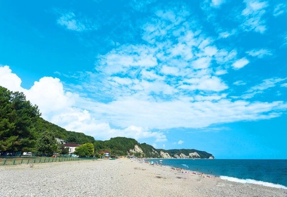 Поездом или самолетом – до г. Сочи (Адлер), далее на общественном транспорте или на такси до «Казачьего рынка» (8 км от ж/д вокзала, 15 км от аэропорта), затем пройти пешком около 500 м до пограничного поста на р. Псоу до границы России и Абхазии. После самостоятельного прохождения паспортного и таможенного контроля до места отдыха можно доехать на автобусе, маршрутном такси или воспользоваться услугами частных водителей.