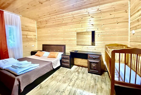 На территории действует кафе, которое не только кормит гостей, но и становится приятным местом для времяпрепровождения. Любителям активного отдыха предусмотрены зона для пикника, место под мангал и выход к горной реке, где можно освежиться в жару.