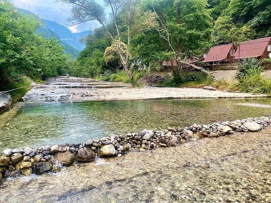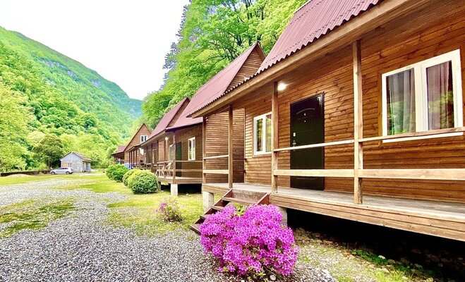 База отдыха «Жоэквара» — идеальное место для тех, кто хочет уединиться с природой и насладиться её красотой в Старой Гагре. Уютные двухэтажные домики с террасами разбросаны по территории площадью 30 соток, расположенной в глубоком живописном ущелье и окружённой величественными горами и бурной горной рекой.