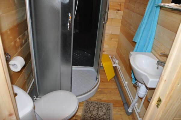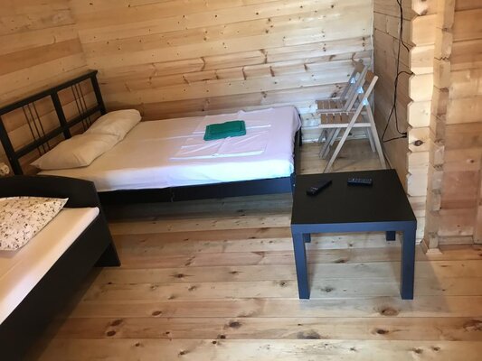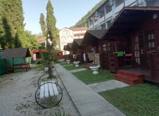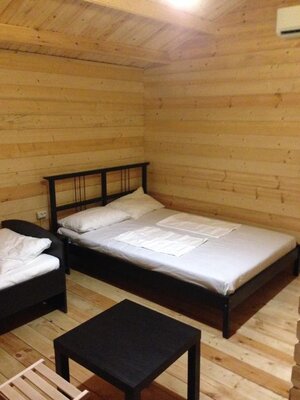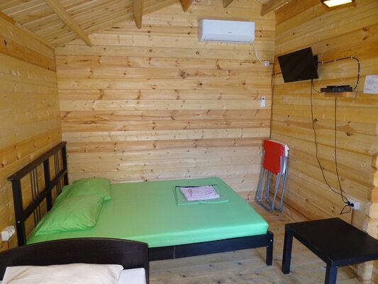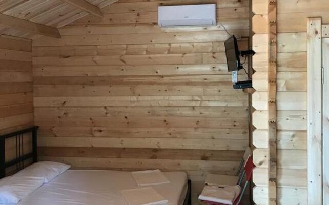 Номерной фонд состоит из 6 трехместных деревянных коттеджей площадью 24 кв. м.