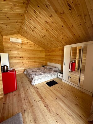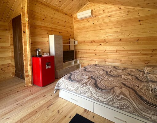 К услугам гостей — 6 уютных гостевых коттеджей, выполненных в стиле эко-домиков. Каждый из них оснащен персональными удобствами для комфортного пребывания: кондиционером, телевизором, холодильником, чайником, а также собственной ванной комнатой с душем, туалетом и феном.