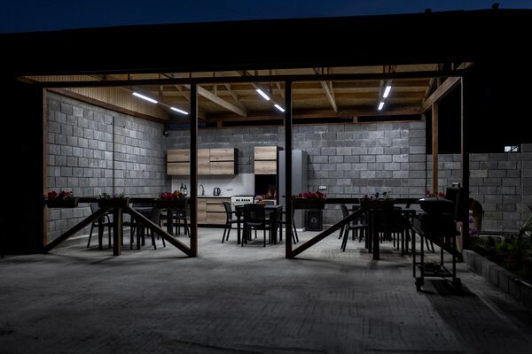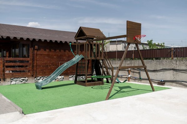 На благоустроенной территории «Поляны» вы найдете открытую кухню, оборудованную всей необходимой техникой и мебелью, отдельную зону для барбекю, а также безопасную детскую площадку для самых маленьких гостей.