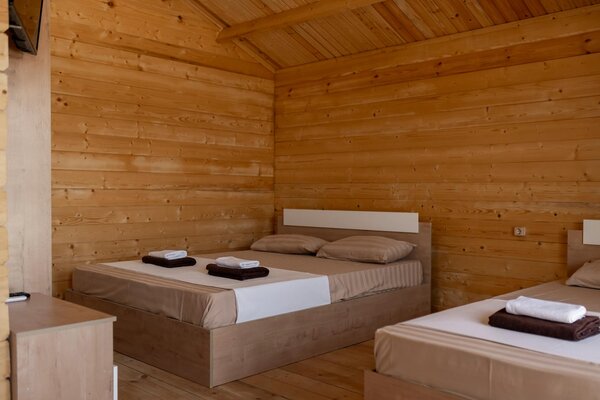 К услугам гостей — 24 комфортабельных коттеджа, каждый из которых оснащен собственной верандой и рассчитан на размещение от 2 до 4 человек. Для вашего удобства в каждом доме предусмотрены все необходимые удобства: личная ванная комната, холодильник, кондиционер, уютная спальня и спутниковое телевидение.
