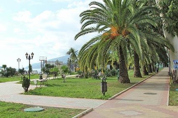 Вокруг расположено множество кафе и магазинов, а в непосредственной близости – знаменитая эвкалиптовая аллея Старой Гагры. Гостиница располагает широким набором туристических услуг.
