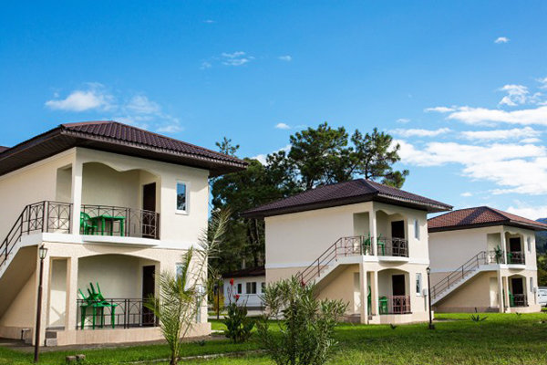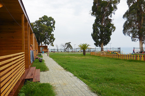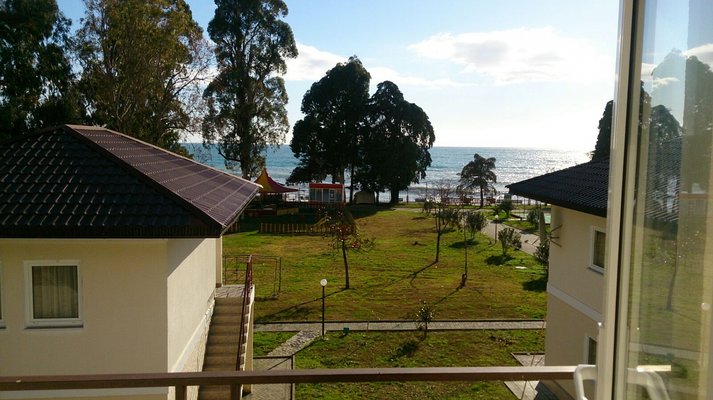 Самолетом или поездом – до города Адлер, затем до Казачьего рынка на общественном транспорте или такси ( 15 км от аэропорта и 8 км от ж/д вокзала), далее – около 500 метров пешком до границы России и Абхазии (пограничный пост на реке Псоу). До курортного комплекса можно доехать на маршрутном такси, автобусе или частном такси.