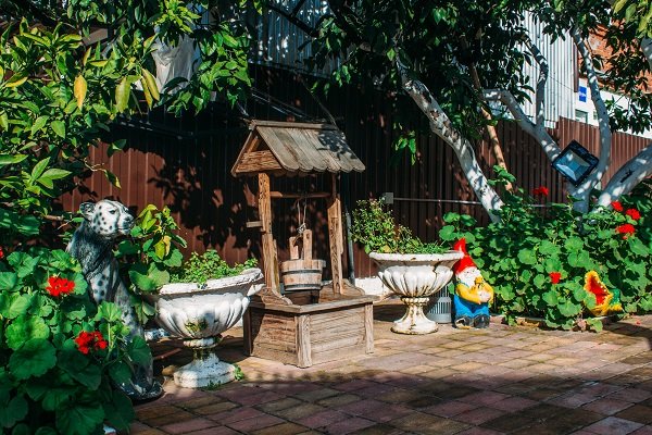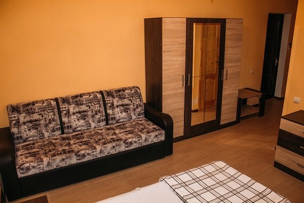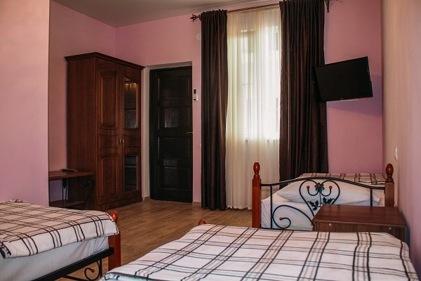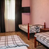 Отель находится на благоустроенной закрытой территории с уголками для отдыха, беседками и скамейками под зеленой листвой. Гостевой дом, ориентированный на семейный отдых с детьми, состоит из двух двухэтажных корпусов. Во дворе отеля растет роскошное мандариновое дерево, плодами которого любят лакомиться гости. В жилом фонде отеля уютные номера с разными вариантами размещения.