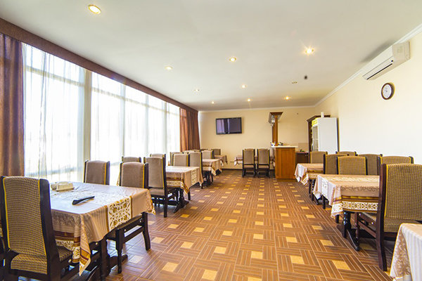 С мая по октябрь, в высокий сезон, гости обеспечиваются трехразовым комплексным питанием. Столы накрываются в гостиничном кафе.