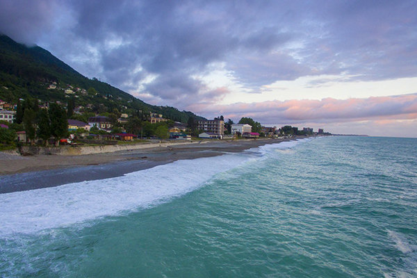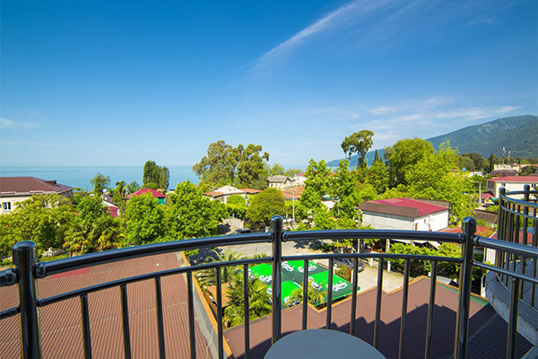 Из окон четырехэтажного отеля открывается панорама моря и Кавказских гор.