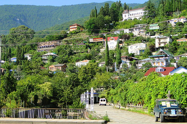 Поездом или самолетом — до г. Адлер, далее на общественном транспорте или на такси до пограничного поста на р. Псоу. После самостоятельного прохождения паспортного и таможенного контроля до места отдыха можно доехать на автобусе, маршрутном такси или воспользоваться услугами частных водителей. Возможна организация трансфера за дополнительную плату.