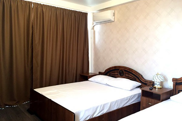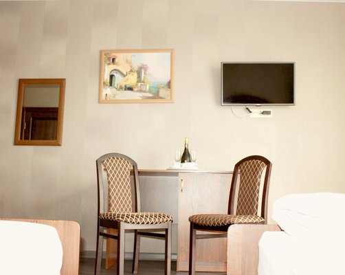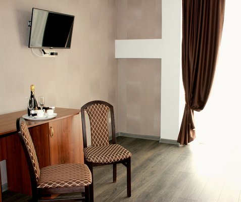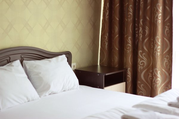 Гости размещаются в 18 стильных номерах уровней «стандарт» и «улучшенный». В распоряжении приезжих — свой санузел с душем и круглосуточным горячим/холодным водоснабжением, ортопедическое спальное место и кондиционер, телевизор со 193 каналами в HD качестве по расширенному цифровому пакету и холодильник-бар с морозильным отделением. В номерах есть вся необходимая мебель и посуда.
