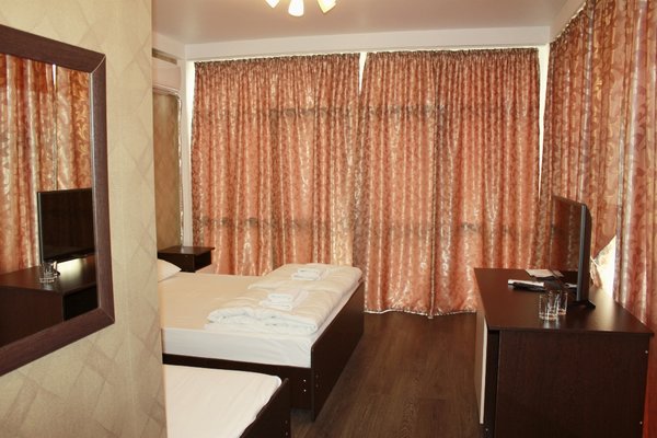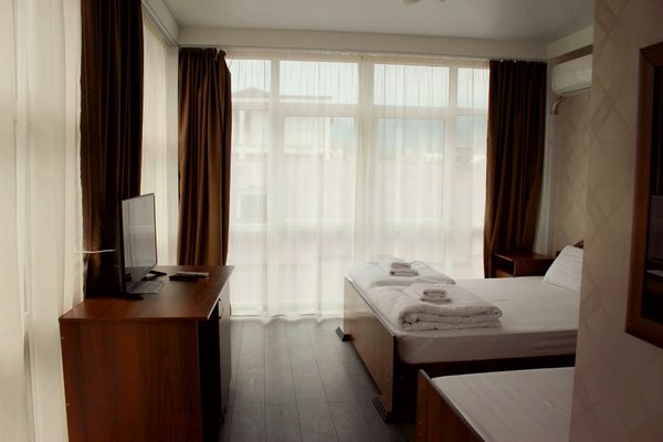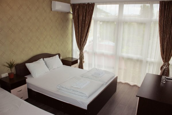 Расстояние до пляжа от отеля 150 метров. Новый номерной фонд находится в трехэтажном корпусе современной архитектуры. «Изюминка» здания — панорамное солнцезащитное остекление с эффектным видом на окружающие красоты: черноморское побережье и Кавказский хребет.
