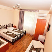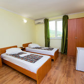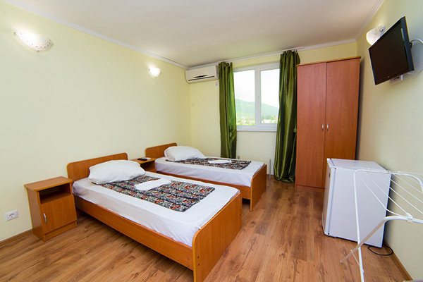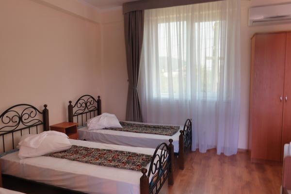 Четырёхэтажный корпус спроектирован таким образом, чтобы на каждом этаже можно было входить в номера с единой террасы. Питание можно заказать дополнительно.