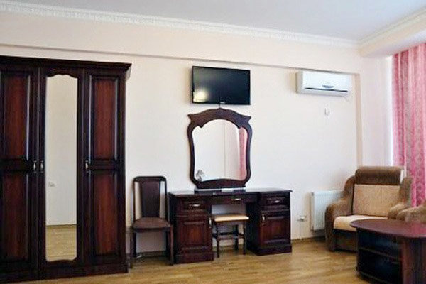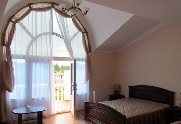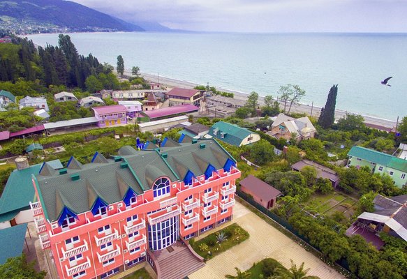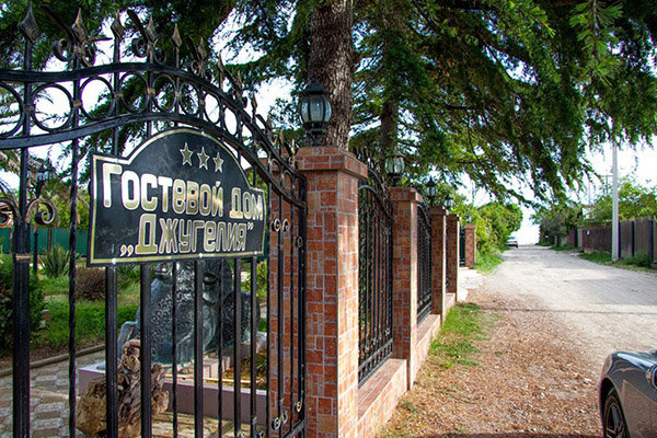 Собственная территория гостевого дома «Джугелия» отличается роскошной растительностью, уютом и красотой. Здесь располагается пятиэтажное здание с прекрасным внешним и внутренним дизайном.