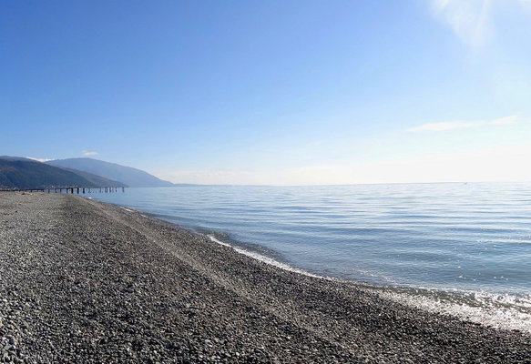 Поселковый пляж с галькой находится в 100 метрах от жилого корпуса.