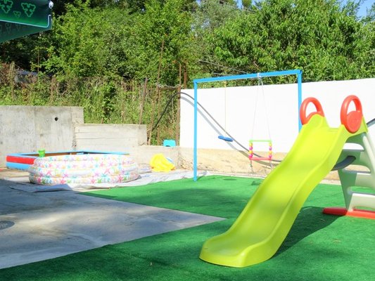 «Горец», предназначенный для семейного отдыха, — настоящий подарок для детей. На заднем дворике устроен детский уголок с бассейном, песочницей, качелями и горкой.