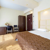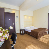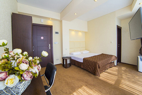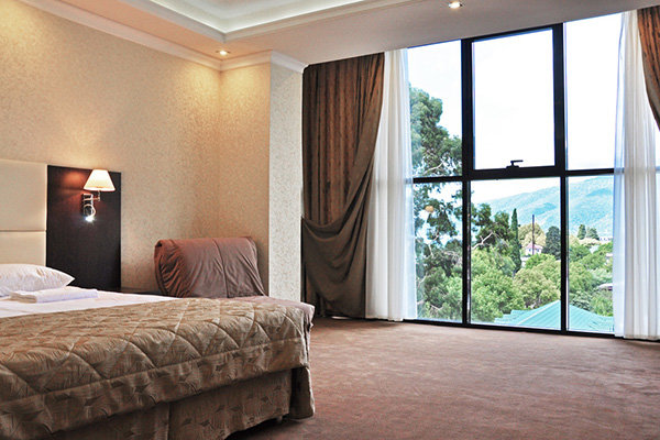 Grand Hotel Gagra – это современный четырёхзвёздочный отель класса люкс с рестораном, баром и SPA-комплексом. Восьмиэтажное здание, состоящее из 55 номеров, оснащенное лифтом, построенное в 2015 году, находится в самом центре города Гагры в Республике Абхазия, напротив городского стадиона, всего в 200 метрах от моря. В шаговой доступности многочисленные кафе, рестораны, магазины, сувенирные лавки. Из окон отеля открывается панорамный вид на город и горы. Интерьеры отеля выполнены в стиле контемпорари. В отделке общественных зон преобладает мрамор, материалы пастельных тонов, декоративные элементы и дополняющие все убранство цветочные композиции. Номера и общественные зоны отеля просторные, светлые. Все продуманно до мелочей, чтобы у вас от отдыха остались только положительные впечатления. Особым элементом интерьера является стеклянный лифт, позволяющий гостям даже в нем не чувствовать себя в замкнутом пространстве, а полностью погрузиться в атмосферу свободы, уюта и легкости.