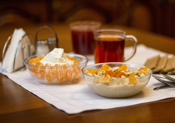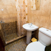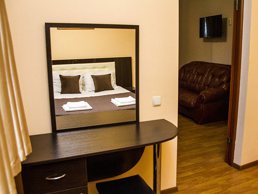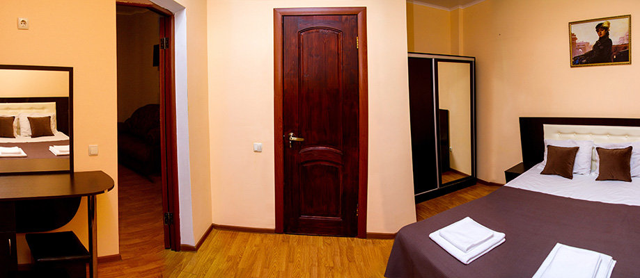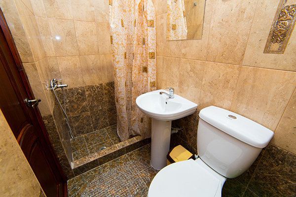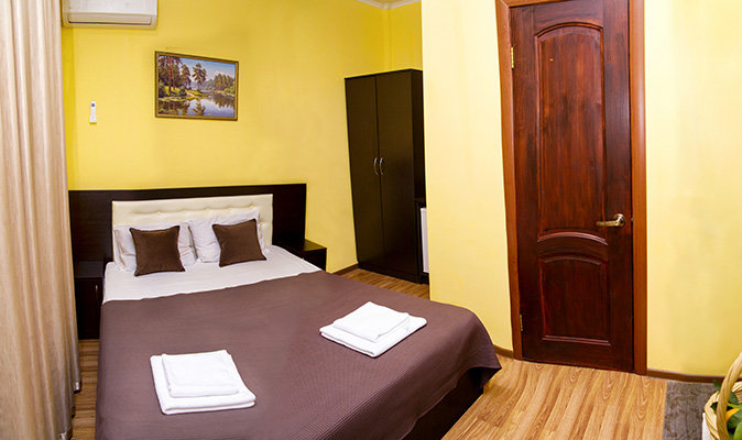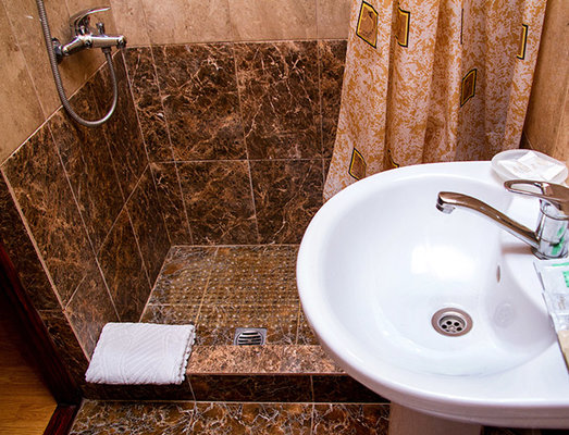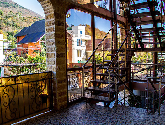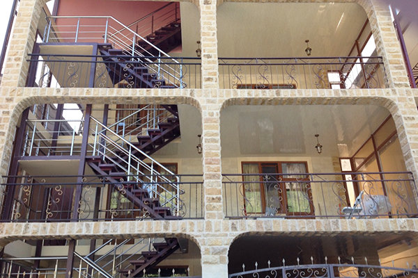 Ажурные решетки, балконы и террасы в здании отеля тоже напоминают о сочетании старины и современности. В здании четыре этажа с номерами категории «стандарт»: небольшие, но уютные. В каждом – двуспальная кровать, холодильник, телевизор и кондиционер. Сотрудники отеля поддерживают в нем идеальную чистоту и порядок.
