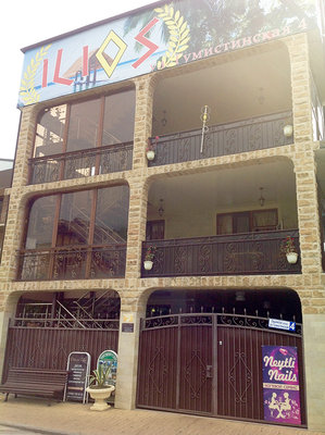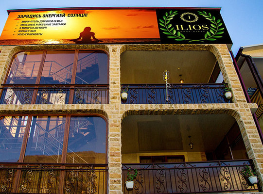 Отель «Илиос» расположен в Абхазии, в городе Гагра, в 150 метрах от моря. Отсюда видны склоны гор под лазурным небом. Красивый пейзаж сочетается с оживленностью курорта — «Илиос» находится рядом с кафе, экскурсионными бюро, аквапарком и центральным рынком, где всегда можно купить свежайшие овощи и фрукты. Название «Илиос» связано с древностью прекрасной абхазской земли, которая когда-то принадлежала грекам, как и оставшийся в легендах город Илион — Троя.