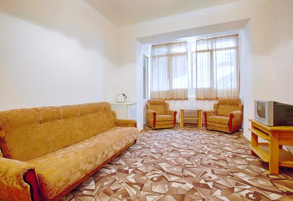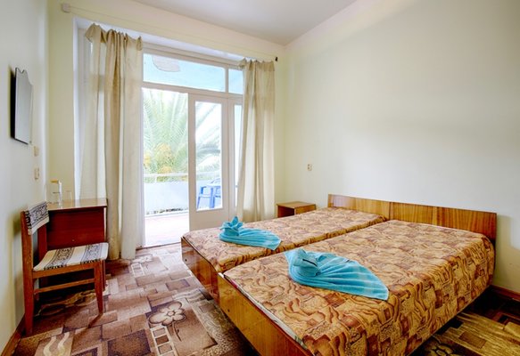 Для размещения в санатории предлагаются простые, но очень уютные номера со всем необходимым набором мебели, техники. Есть номера с балконами и без.