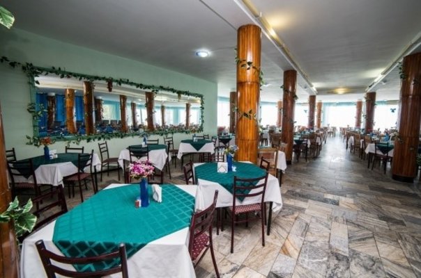 В столовой пансионата представлены разнообразные блюда «Шведского стола» по системе отдыха "Все включено", имеется спортивная и детская площадка открытый бассейн и собственный пляж прямо у корпуса.