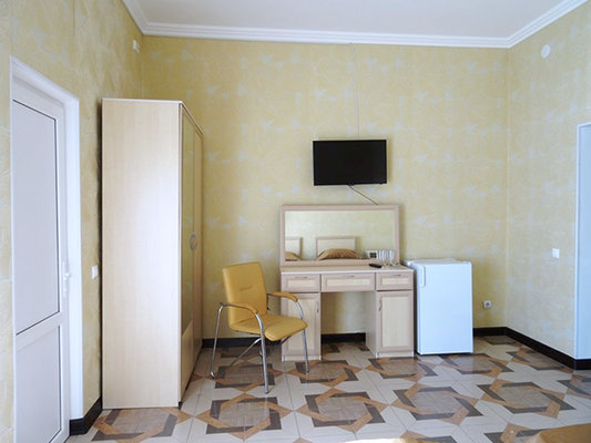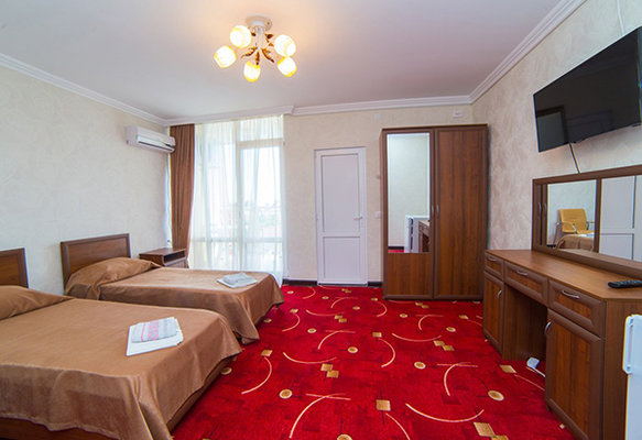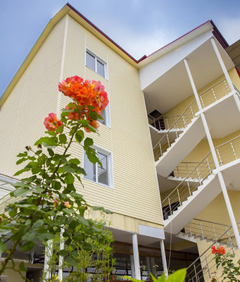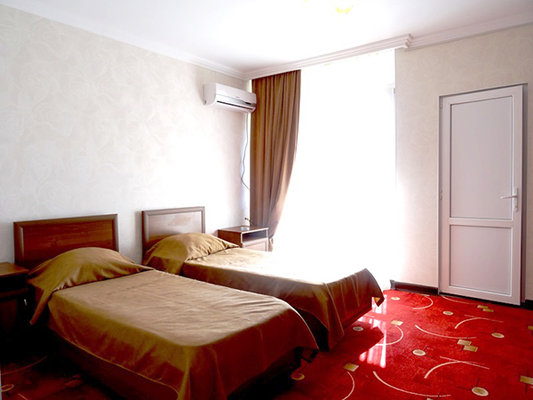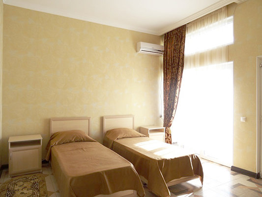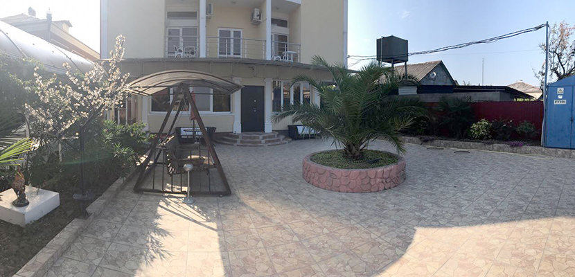 На собственной огороженной территории отеля расположены уютные зоны отдыха, субтропические растения, цветы и беседки. Четырехэтажный корпус отеля способен одновременно вместить более 60 человек. Все гостиничные номера оборудованы индивидуальными санузлами с душем и необходимым набором бытовой техники.
