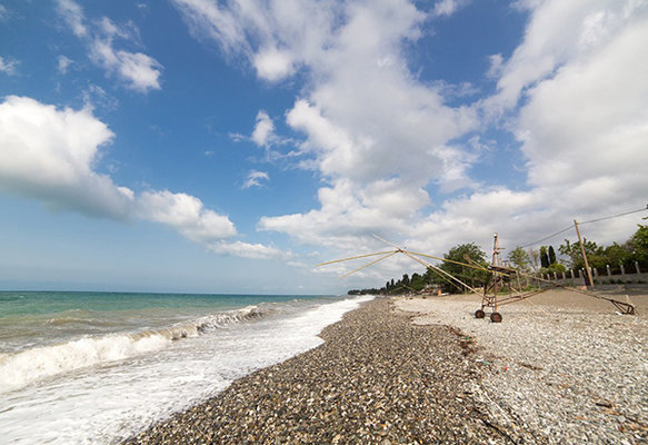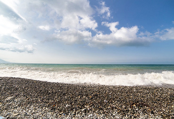 Все пляжи поселка — галечные. У моря расположены кафе, службы проката, водные аттракционы. Дорога до ближайшего к отелю пляжа занимает около 15 минут. Морская вода на побережье теплая, чистая и прозрачная. Спуск в море пологий и постепенный, что очень удобно для безопасного купания детей.