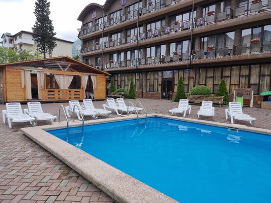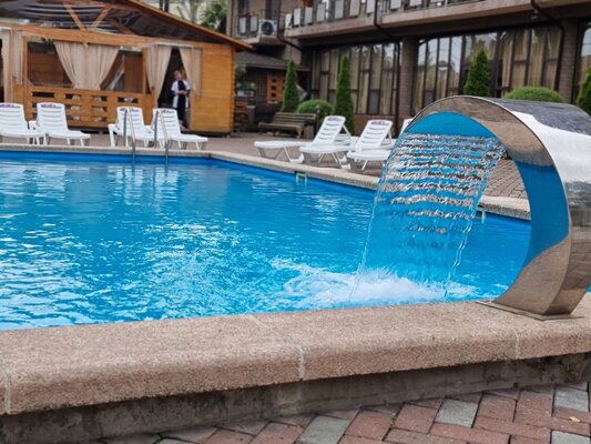 Так же на территории есть ресторан с разнообразным меню, предоставляются завтраки, обеды и ужины по системе «Шведский стол», открытый бассейн, лежаки и полотенца для бассейна предоставляются бесплатно.