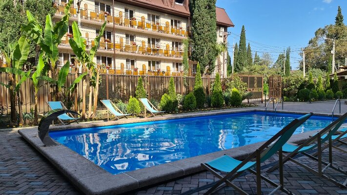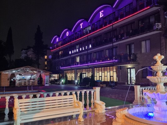 Отель «Магнолия» — это современный гостиничный комплекс, расположенный в живописном районе Новой Гагры, всего в нескольких шагах от моря.