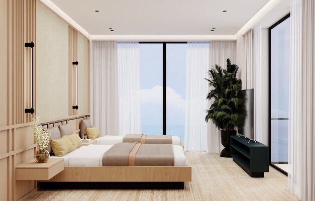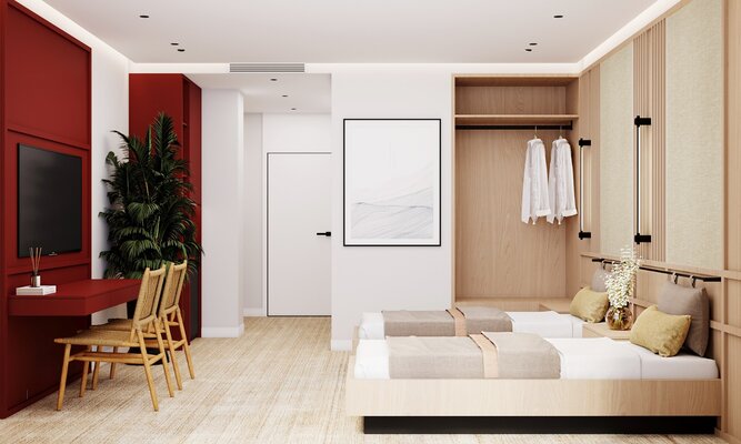 Более 200 номеров различных категорий — от уютных стандартов до роскошных люксов. Просторный ресторан с 3-разовым питанием по системе «Шведский стол», предлагающий разнообразные блюда. Скоро открытие СПА-центра! К 1 сентября 2024 года вы сможете наслаждаться оздоровительными процедурами в отдельном 2-этажном здании.