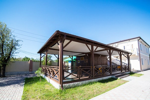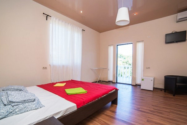 Комплекс занимает благоустроенную территорию, на которой расположились 4 двухэтажных коттеджа. Для отдыхающих оборудована летняя веранда, перед корпусами установлены скамейки для отдыха. Гостей ожидают просторные двухместные номера «Полулюкс», оснащенный душем и кондиционером. В каждом номере имеются холодильник, телевизор, фен. Для автовладельцев возле корпусов организована охраняемая парковка, на ресепшене можно заказать экскурсии в Пицунду, Гагру и в другие интересные места республике.