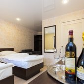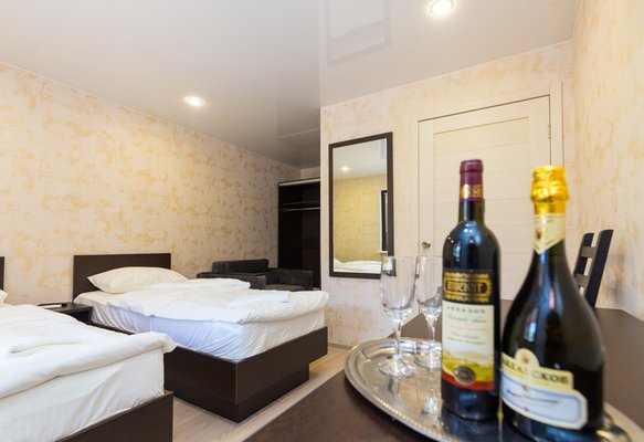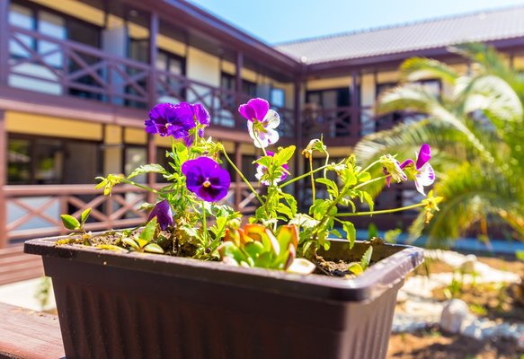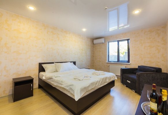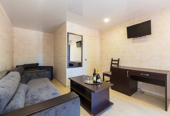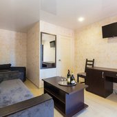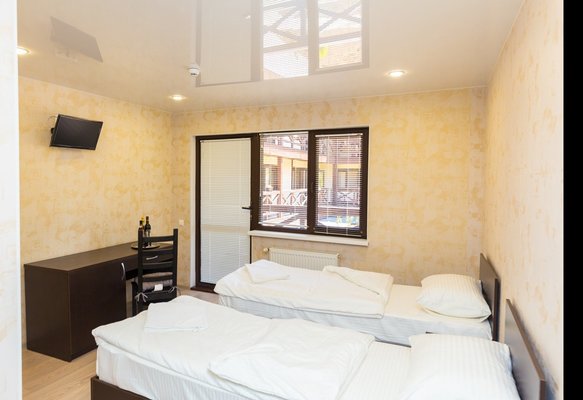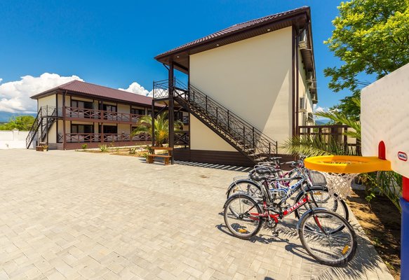 Здание отеля представляет собой новый двухэтажный корпус в скандинавском стиле. Огороженная и недоступная для посторонних территория украшена южными растениями. На территории есть места для спокойного и активного отдыха, теневые террасы и площадки. В жилом фонде отеля 24 номера различных категорий, прекрасно меблированные и со свежим ремонтом. Все номера отеля, независимо от их категории, обеспечены отдельными санузлами с душем.