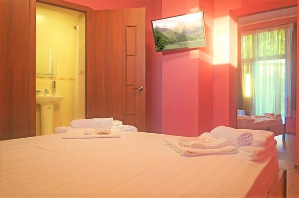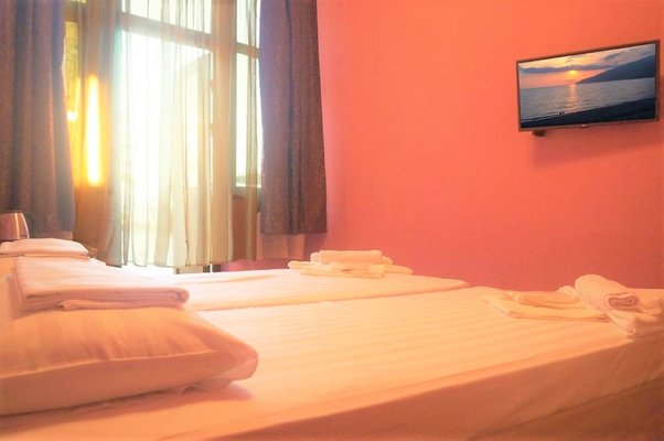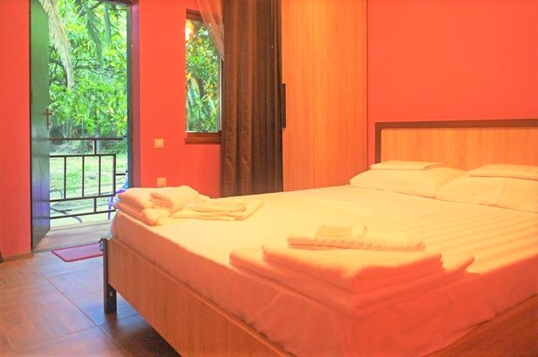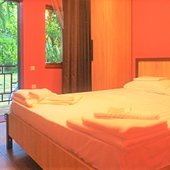 Вы будете жить в 50 метрах от пляжа. Каждый номер имеет свой, персональный выход в парк или на террасу, к морю. Одинадцать двухместных номеров (возможно одно дополнительное), 17 кв. м. комната, с кондиционером и холодильником. Один более просторный, семейный номер, из двух комнат. Он расчитан на 4 человека и возможны дополнительные места. В каждом номере есть кондиционер, холодильник, шкаф-гардероб, телевизор.