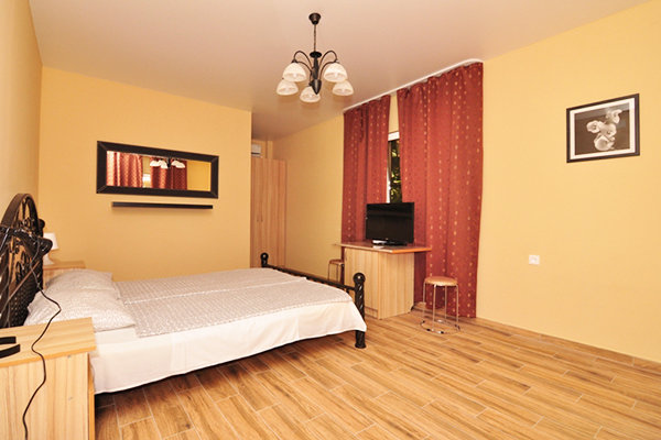 На благоустроенной охраняемой территории находится двухэтажный корпус. Отель «Руно» огорожен каменным забором и воротами, стилизованными под старину. Во дворе — летнее кафе, газоны с зеленой травой, тенистые деревья, клумбы, виноград. Отсюда видны склоны гор. Стильные просторные номера отеля относятся к категории «стандарт».