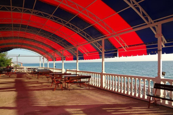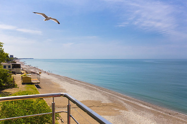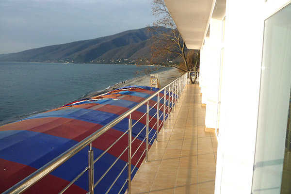 Гостиница расположена на берегу Черного моря. Рядом с отелем есть песчано-галечный пляж. Он не оборудован.