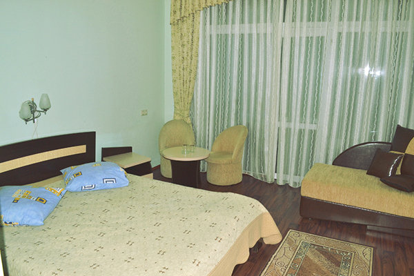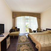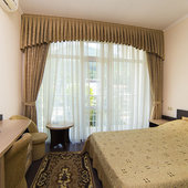 В гостинице организовано питание на выбор. Можно выбрать трехразовое комплексное питание или комплексный завтрак. В меню ресторана есть блюда кавказской и европейской кухни. Также в меню есть диетические и детские блюда.