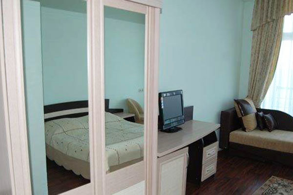 Дизайн гостиницы «Руслан» и ее территории отличается средиземноморским колоритом. Закрытый двор украшают бассейн, роскошные пальмы, уголки для отдыха и кафе. Отель работает круглый год и принимает гостей без возрастных ограничений.