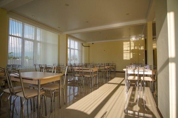 На территории отеля «Сария» есть собственное кафе, в котором организовано трехразовое питание гостей.