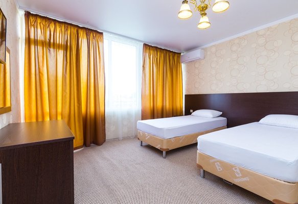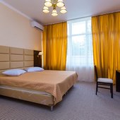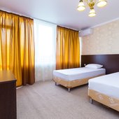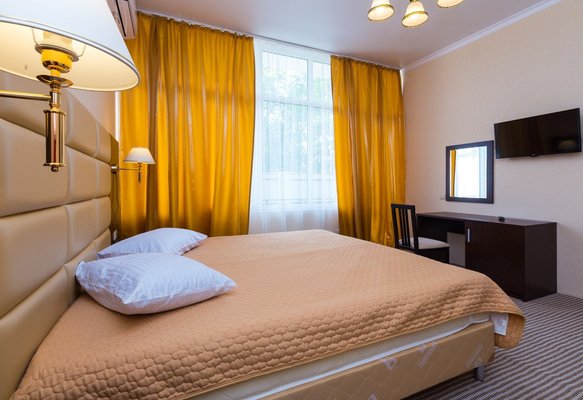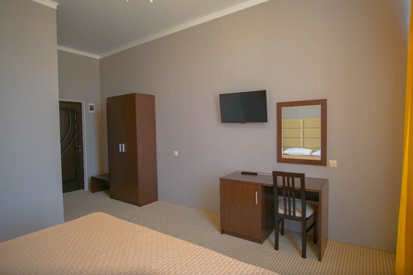 Трехэтажное здание отеля построено в 2018-м году. Ухоженная закрытая территория гостиницы находится под охраной. В просторных номерах есть все необходимое для комфортного отдыха, преимущественно семейного: широкие кровати, возможность дополнительного спального места, ковровое покрытие, светильники, кондиционеры, телевизоры, холодильники. С балконов открывается живописная панорама окрестностей.