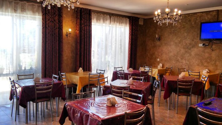 Местом питания в отеле служит основной ресторан, есть еще бар, зона барбекю для желающих самостоятельно приготовить шашлык, торговый автомат с напитками.