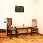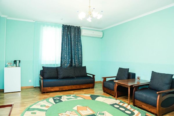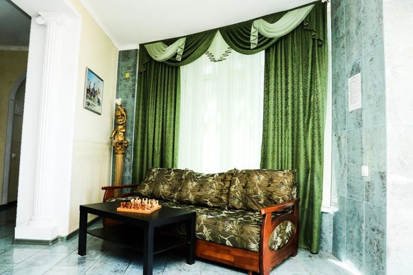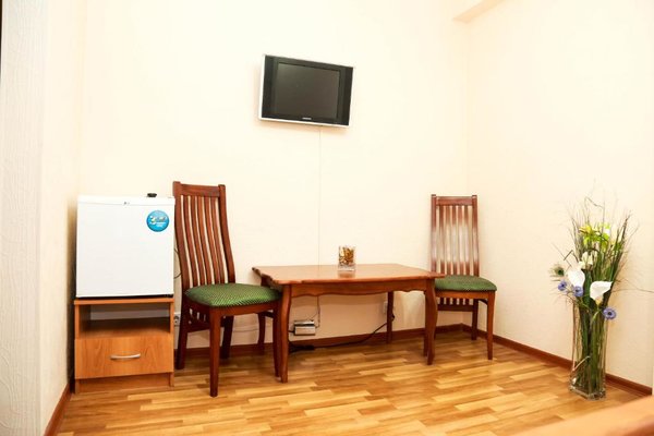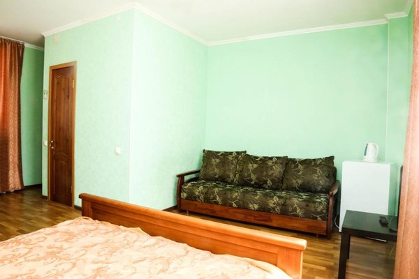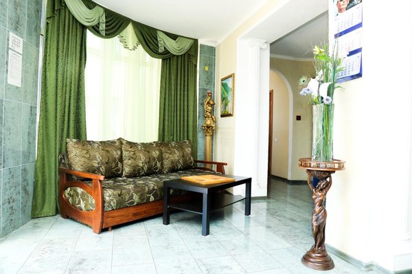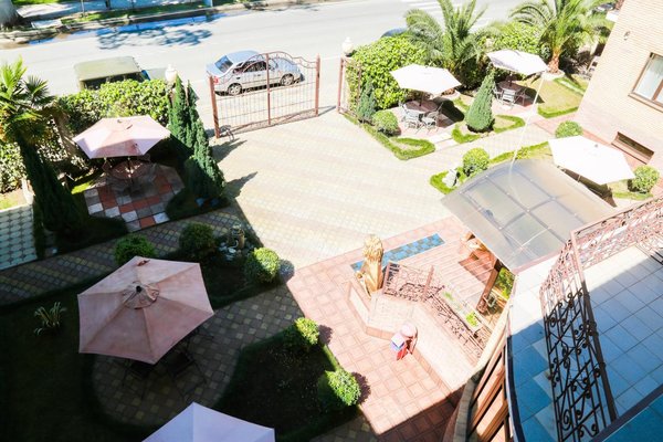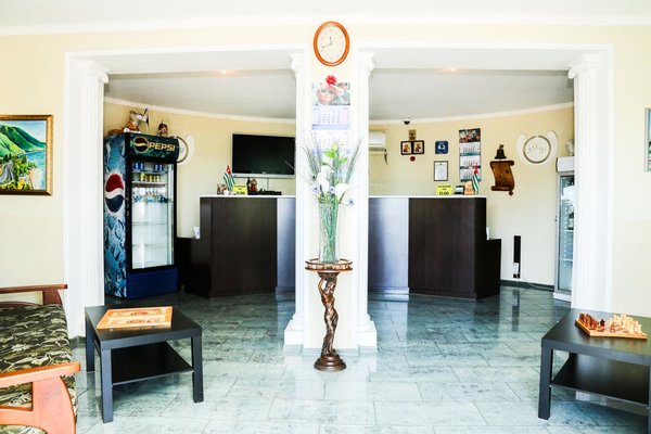 На компактной, ухоженной и охраняемой территории гостиницы — единственный жилой корпус в три этажа, окруженный великолепными экзотическими деревьями, зеленью, цветниками и уютными уголками для отдыха. Гостиничный фонд, составленный из номеров «люкс», «полулюкс» и «стандарт», привлекателен и комфортен. Все его номера, независимо от класса, имеют балконы (кроме первого этажа), собственные санузлы с душем и укомплектованы набором необходимой бытовой техники: кондиционером, холодильником, телевизором.