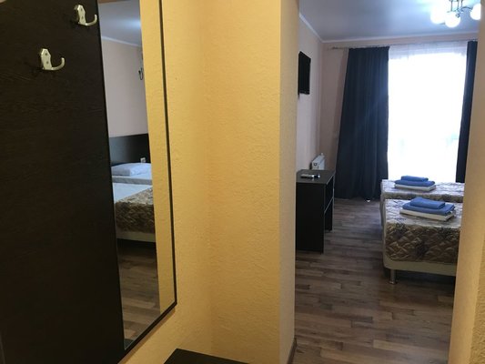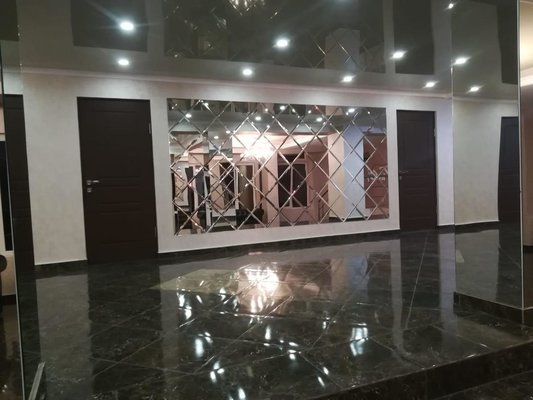 В здании гостиницы «Тристан» три этажа. На первом этаже гостей встречает уютный просторный холл с мягкими диванами и мраморными полами. К номерам ведет лестница.
