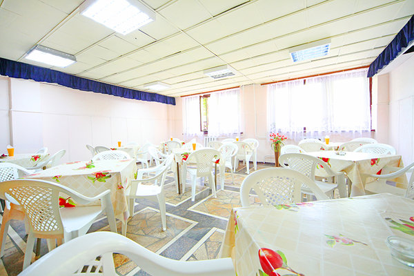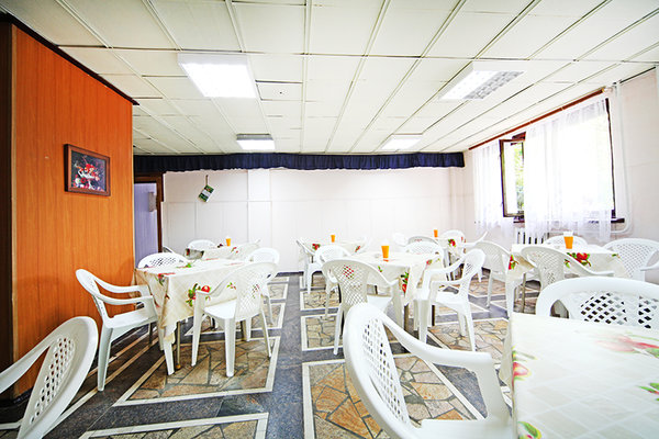 Питание гостей не входит в пакет обязательных услуг и осуществляется ими самостоятельно. В доме отдыха для этого есть кафе с домашней кухней, работающая весь день, а также бар.