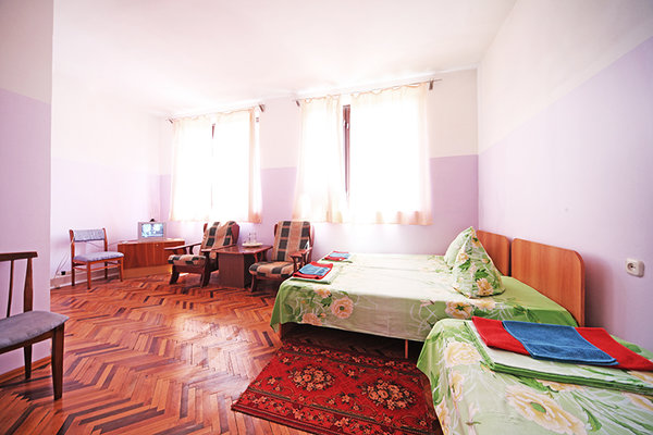 Собственная территория гостиницы огорожена и недоступна для посторонних. Она ухожена и распланирована: хватает места для чудесных субтропических растений, цветов, декоративных элементов и уютных зон отдыха. Среди окружающей роскошной зелени расположились трех и двухэтажные здания корпусов с номерами различных категорий. Каждый номер оборудован необходимым набором бытовой техники: сплит-системой, холодильником, телевизором.