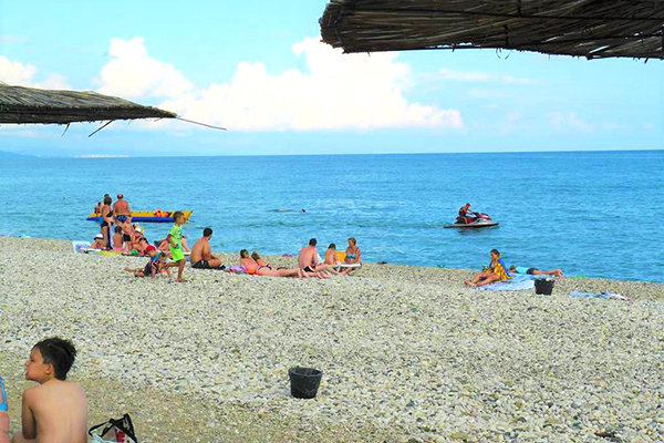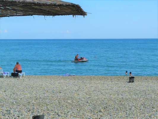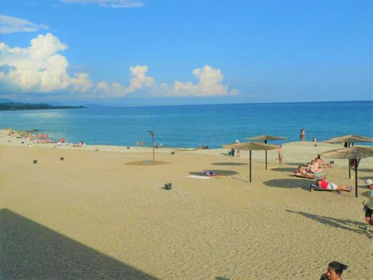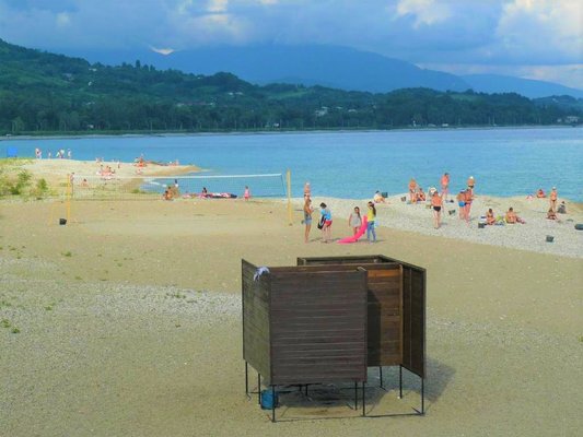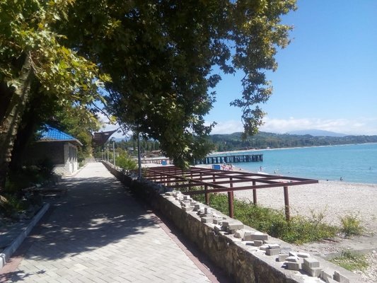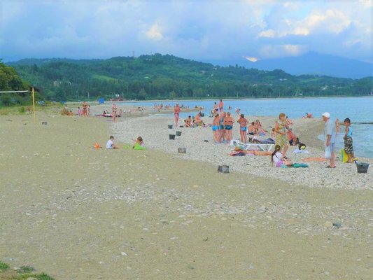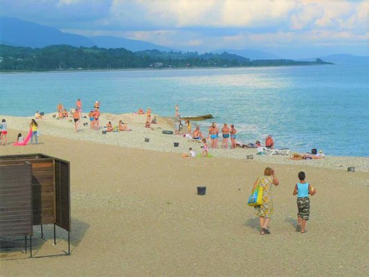 - Поездом или самолетом – до г. Адлер, далее на общественном транспорте или на такси до Казачьего рынка (8 км от ж/д вокзала, 15 км от аэропорта), затем пройти пешком около 500 метров до пограничного поста на р. Псоу до границы России и Абхазии. После самостоятельного прохождения паспортного и таможенного контроля до места отдыха можно доехать на автобусе, маршрутном такси или воспользоваться услугами частных водителей.