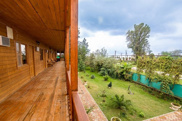 Номерной фонд расположен в трехэтажном деревянном корпусе и одно-, и двухэтажных корпусах из камня.