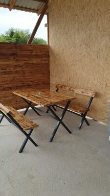 Все необходимое для приготовления и приема пищи: холодильник, плита, микроволновка, посуда, мангальная зона, столики. Есть стиральная машина для отдыхающих.
