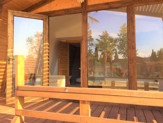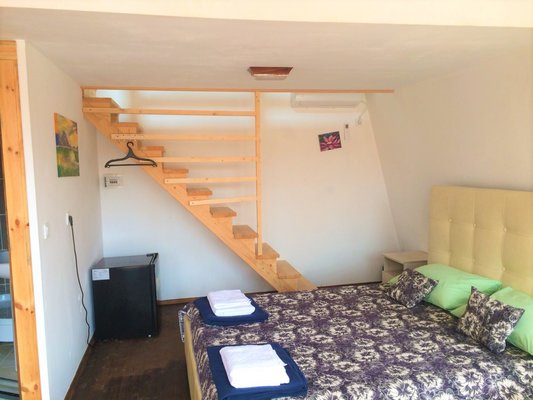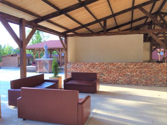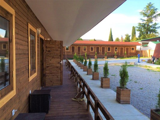 Собственная территория комплекса отгорожена и ухожена, на ней много приятных уголков и зон отдыха. 29 одноэтажных коттеджей, построены из натурального дерева и экологически чистых материалов. Они оборудованы санузлами с душем, необходимым набором бытовой техники и сейфами. Вода в номерах — с лечебным эффектом из сероводородного источника и имеет характерный запах.