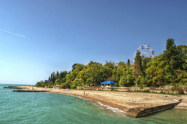 | Самолетом или поездом – до города Адлер, затем до Казачьего рынка на общественном транспорте или такси ( 15 км от аэропорта и 8 км от ж/д вокзала), далее – около 500 метров пешком до границы России и Абхазии (пограничный пост на реке Псоу). До курортного комплекса можно доехать на маршрутном такси, автобусе или частном такси. |