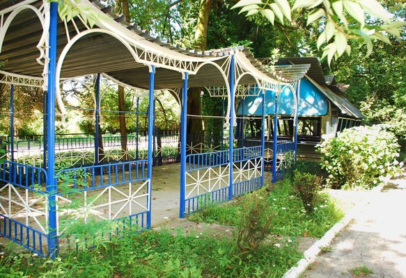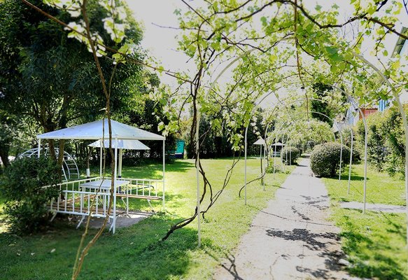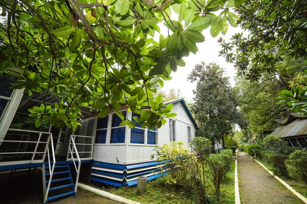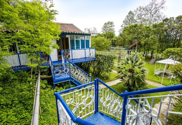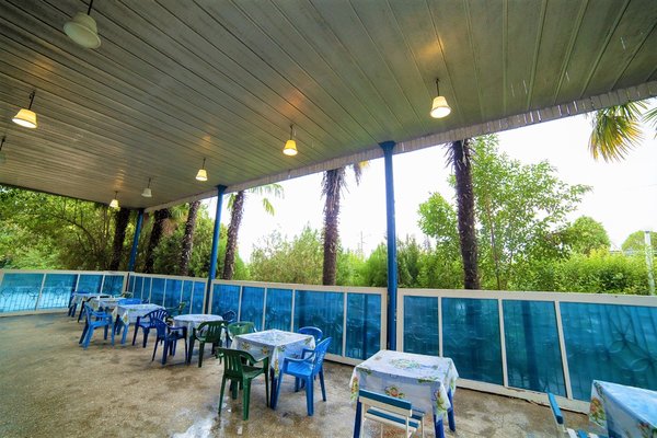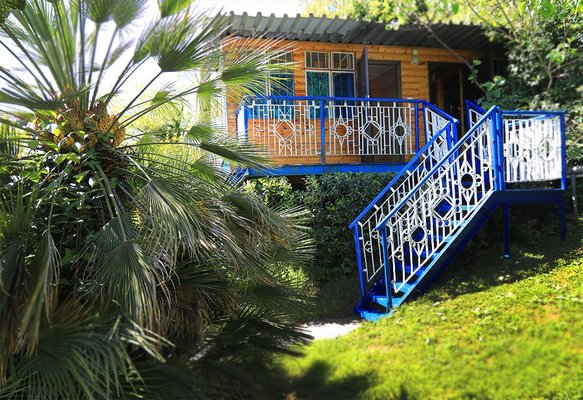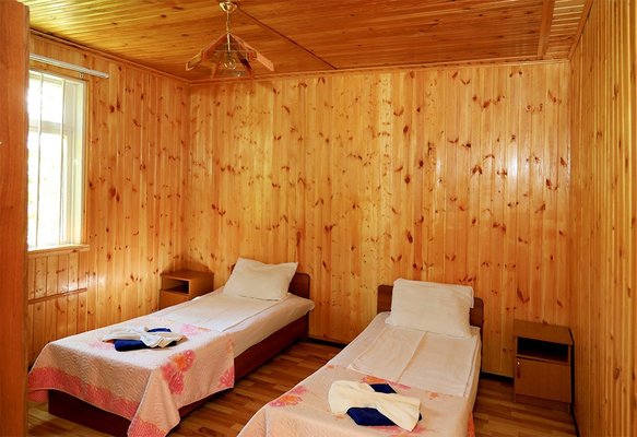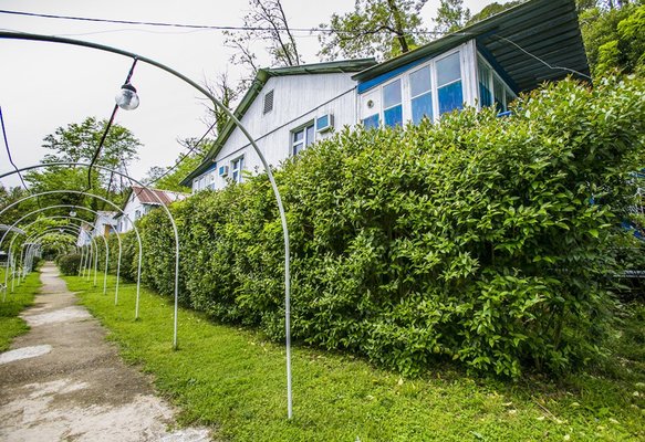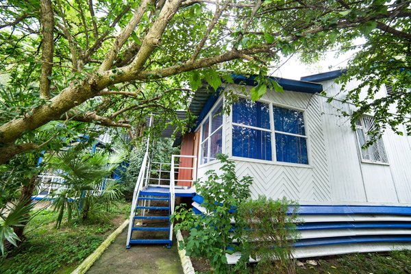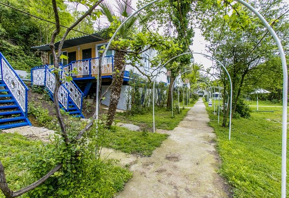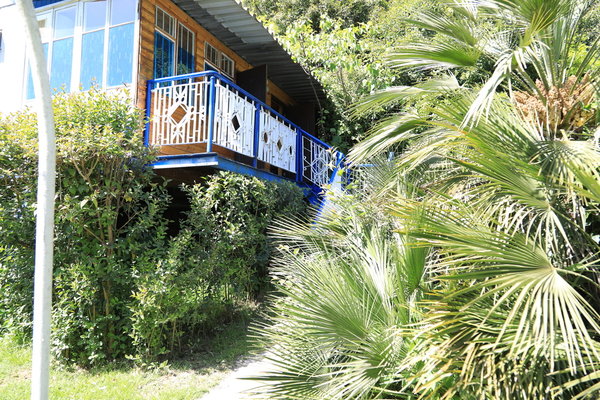 Комплекс занимает благоустроенную территорию, окруженную декоративными южными растениями, на которой разместились одноэтажные летние домики. Однокомнатные и двухкомнатные домики рассчитаны на проживание от 2-х до 4-х человек. Каждый оснащен вентилятором или кондиционером, везде есть телевизор. Ряд домиков оборудован душем, в других же удобства на улице.