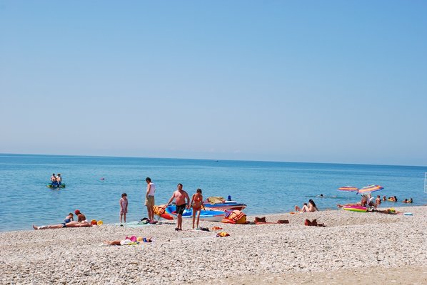 В 30 метрах находится собственный песчано-галечный пляж. Отдыхающие на ресепшене могут взять напрокат весь необходимый пляжный инвентарь.